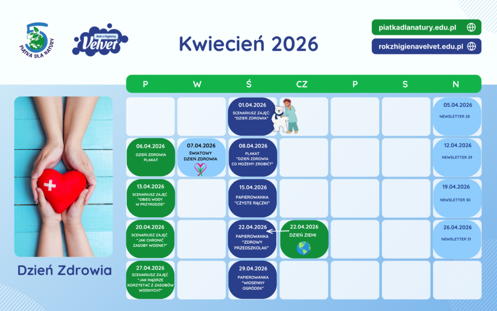 Nowy miesiąc to czas na ważne odkrycia! W kwietniu skupiamy się na zasobach wodnych – dowiemy się, skąd bierze się woda, jak wygląda jej obieg w przyrodzie oraz jak możemy ją chronić. Przygotowaliśmy materiały, które pokażą dzieciom, jak mądrze korzystać z wody i dlaczego jest ona tak cenna w naszym codziennym życiu.